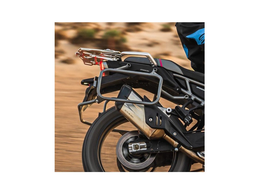 Originální držáky bočních kufrů a brašen CFMOTO a Westwind. Sada obsahuje kromě vlastních nosičů také přepracovaný kryt výfuku a nové podsedlové plasty s instalačními otvory.Buďte první, kdo napíše příspěvek k této položce.