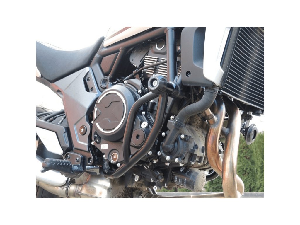 Padací rám od české firmy RDMOTO pro motocykly CFMOTO řady 700CL-X (verze Adventure/Heritage/Sport). Zajišťuje maximální ochranu stroje při pádu. - Cena za pár včetně dvou kulatých protektorů a montážní sady