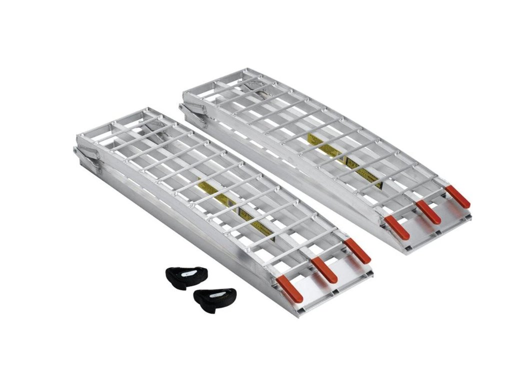 Tyto lehké obloukové hliníkové rampy slouží jako dvojité rampy pro nakládání a vykládání čtyřkolek z kamionů a přívěsů. Dodávají se s ocelovými bezpečnostními lanky pro připevnění rampy k nákladnímu automobilu nebo přívěsu. Tyto rampy mají 1500 lb.s. kombinovaná nosnost a složení dostatečně malé, aby se během přepravy vešlo pod čtyřkolku. Složí se na 88" x 12".