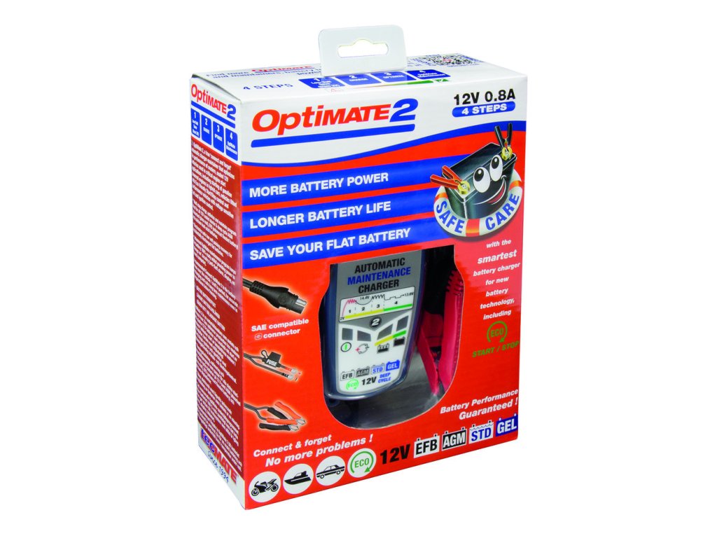 OptiMate 2, všestranný plně utěsněný automatický udržovač baterií pro vaše klasické/moderní auto nebo pick-up nebo 12V baterii vašeho obytného vozu / karavanu – dokonalá údržba pro startovací baterie nebo baterie s hlubokým cyklem!