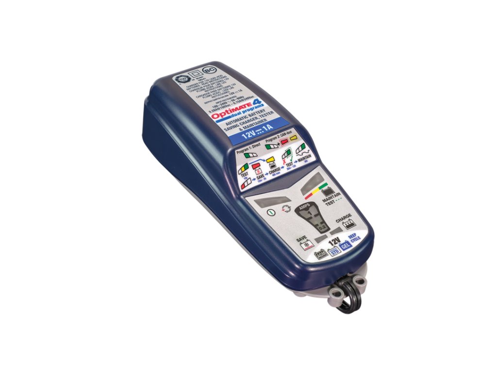 OptiMate 4 Dual Program, nejpokročilejší a nejdůvěryhodnější 12V nabíječka šetřící baterii pro váš vysoce výkonný nebo turistický motocykl, ATV, Side by Side nebo vodní skútry – energeticky nejúčinnější 1A nabíječka na světě!