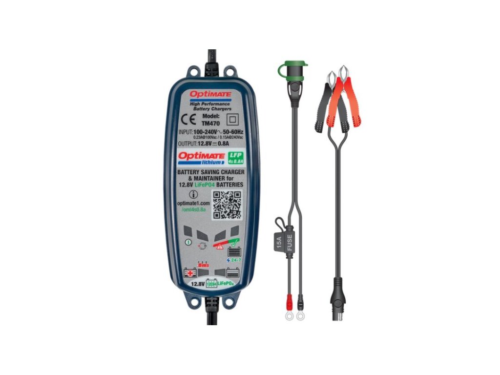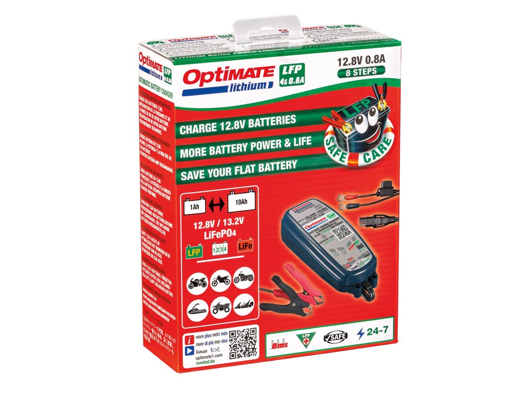 OptiMate Lithium 4s 0,8A, základní nabíječka baterií pro 12,8V/13,2V LiFePO4 / LFP ve vašem terénním, motokrosovém nebo závodním motocyklu/stroji – dokonalá ochrana pro vaši vysoce výkonnou lithiovou baterii.