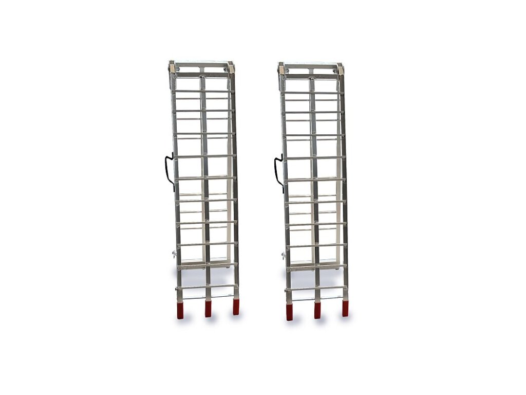 Lehké hliníkové skládací nájezdy ideální pro nakládání motorky nebo čtyřkolky. Maximální nosnost jednoho nájezdu 340 kg, šířka 28 cm, prodávané v páru. - pogumované konce pro bezpečné ukotvení na auto nebo vlek - spona pro aretaci ve složené poloze - madlo pro pohodlnou manipulaciBuďte první, kdo napíše příspěvek k této položce.